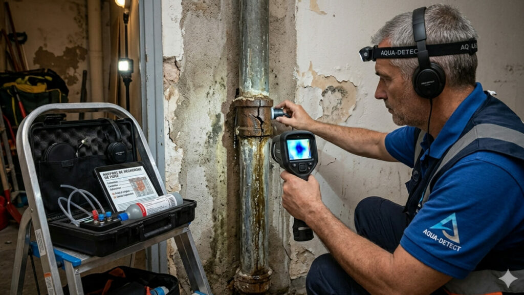 Une étape clé consiste à déterminer la cause du dégât des eaux grâce à une recherche de fuite.
