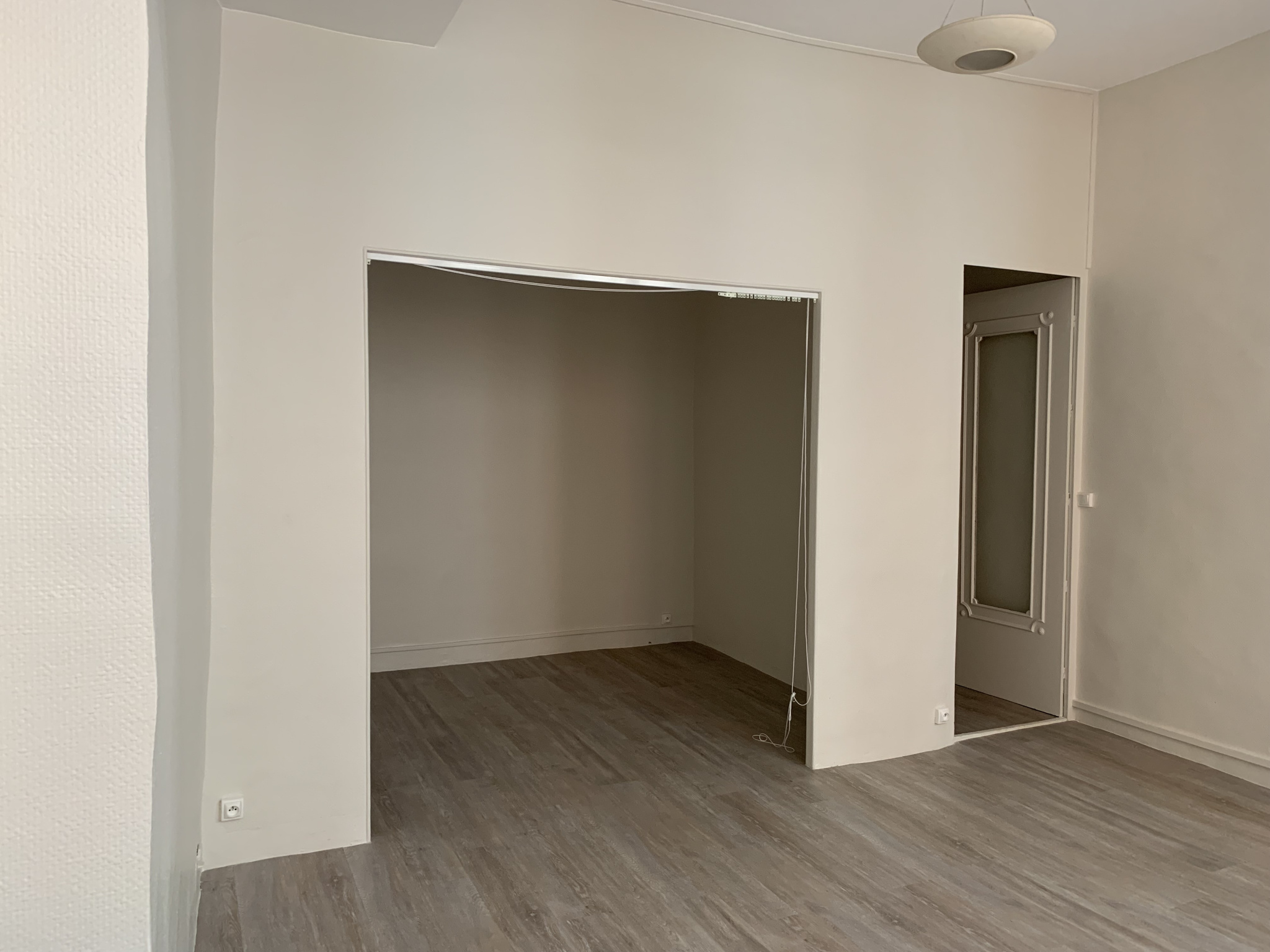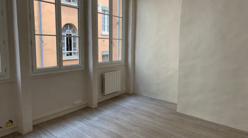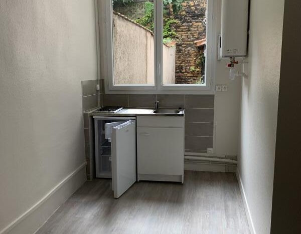 Appartement rénové (chauffage, fenêtres, peinture, sol) Rue St Georges à Lyon 5. Il est composé d’une entrée, WC et salle de douche (italienne), cuisine avec kitchenette avec espace repas, une grande pièce de vie avec une alcove.