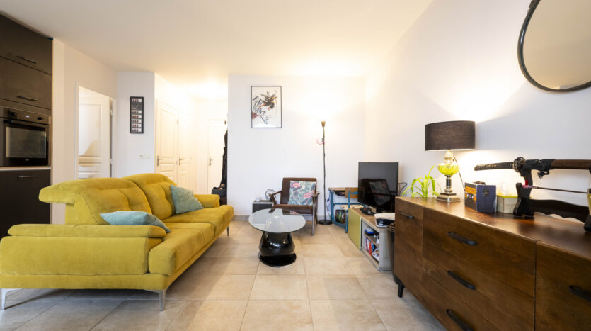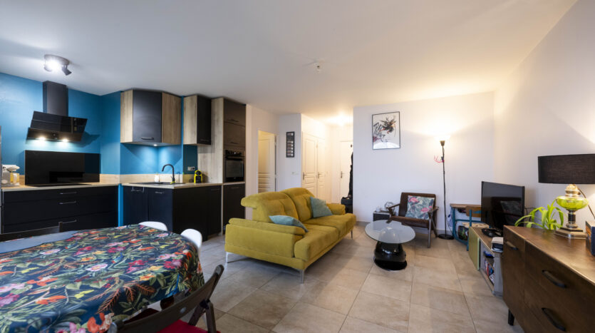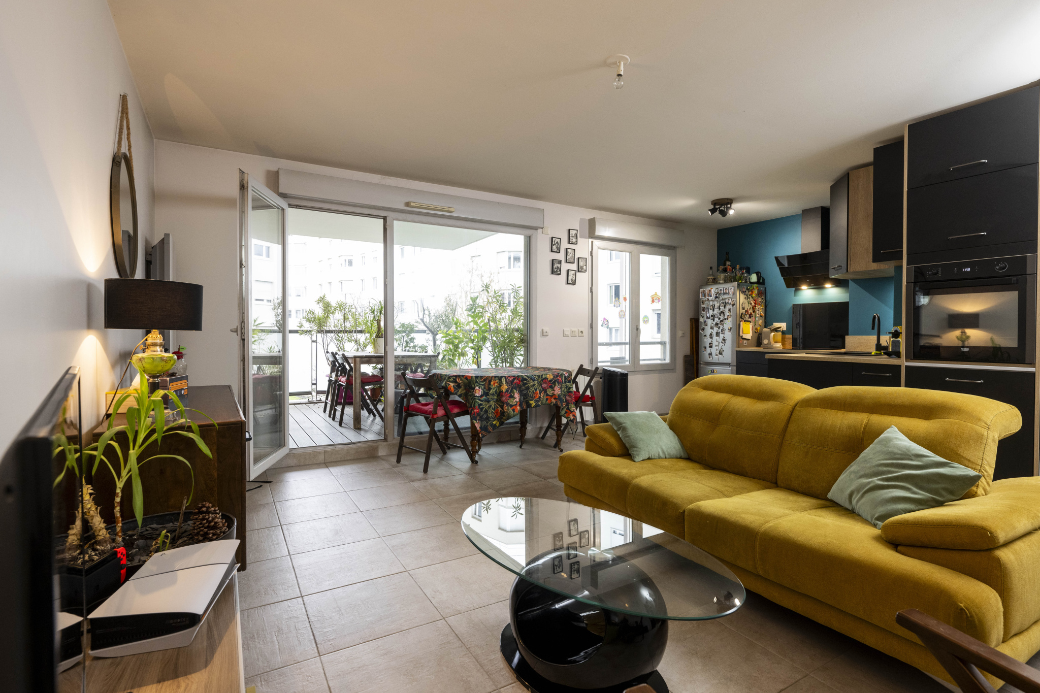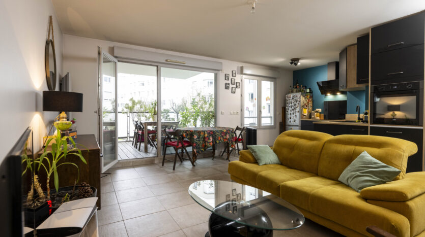 Lyon 7ème – rue André Bollier / Marcel Mérieux. Dans copropriété résidentielle de 2010 et profitant de la situation calme et confidentielle d’une vaste cour intérieure arborée. Superbe appartement de trois pièces avec terrasse de plus de 11m2. Séjour cuisine convivial de 28m2, coin nuit indépendant avec salle de bains et wc séparé. En très bon état général, double vitrage, vmc, rangements. Garage en sous-sol pour 20 000EUR en supplément. Métro Debourg à 8 minutes.