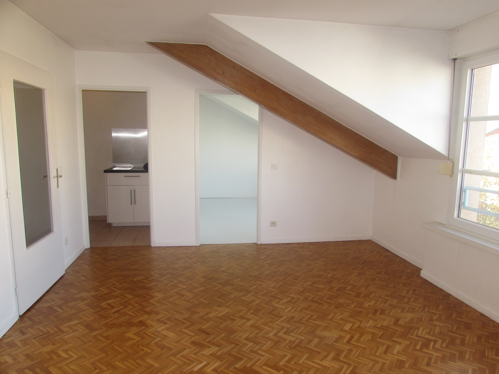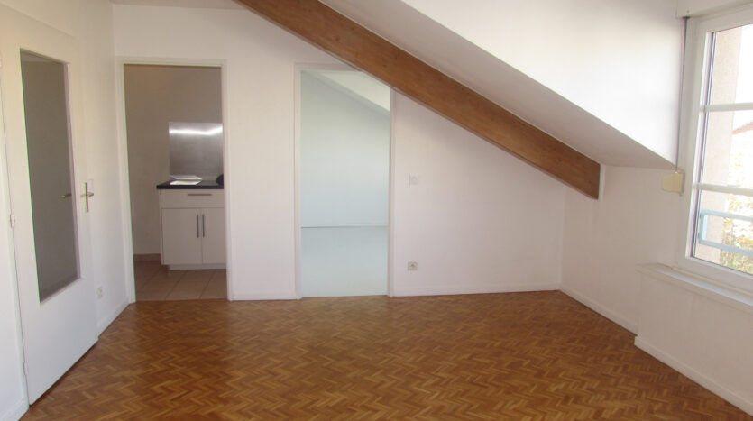 Au coeur de Monplaisir – Superbe appartement de deux pièces au dernier étage d’un immeuble résidentiel sécurisé de 1994 avec ascenseur. Volumes surprenants, belle hauteur sous plafond, les perspectives sont dégagées et l’appartement éclairé par de grandes fenêtre en double vitrage. Parquet massif, chauffage individuel à inertie, le logement est en bon état général. Salle de bains privative à la chambre, hall d’entrée, cuisine équipée, wc séparé, placards. Garage en sous sol pour 20 000EUR.