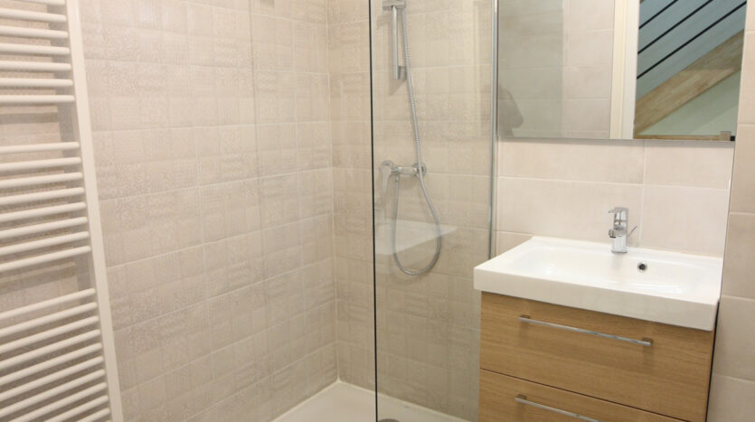 ST BONNET DE MURE proche centre, appartement T4 de 78m2 environ sur 3 niveaux en excellent état. Ce bien comporte un spacieux et lumineux séjour, une cuisine indépendante aménagée et équipée. Buanderie avec WC. Au 1er étage, 2 chambres avec rangements, belle salle d’eau avec WC. Au dernier niveau possibilité de faire une 3ème chambre. 2 places de stationnement privatives. Très belles prestations, matériaux de qualité. Eau froide incluse dans les charges. Disponible début décembre