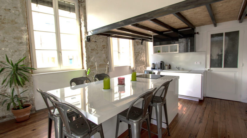 Situé sur un secteur prisé, très bel appartement T2 meublé en duplex de 52 M2 avec une mezzanine. Il est composé d’une entrée avec WC et grand placard, d’une lumineuse pièce de vie avec cuisine américaine très bien équipée et agencée, en prolongement une pièce servant de cellier. A l’étage la chambre équipée d’un grand dressing avec une salle de bains ouverte. Disponible de suite fin avril.
